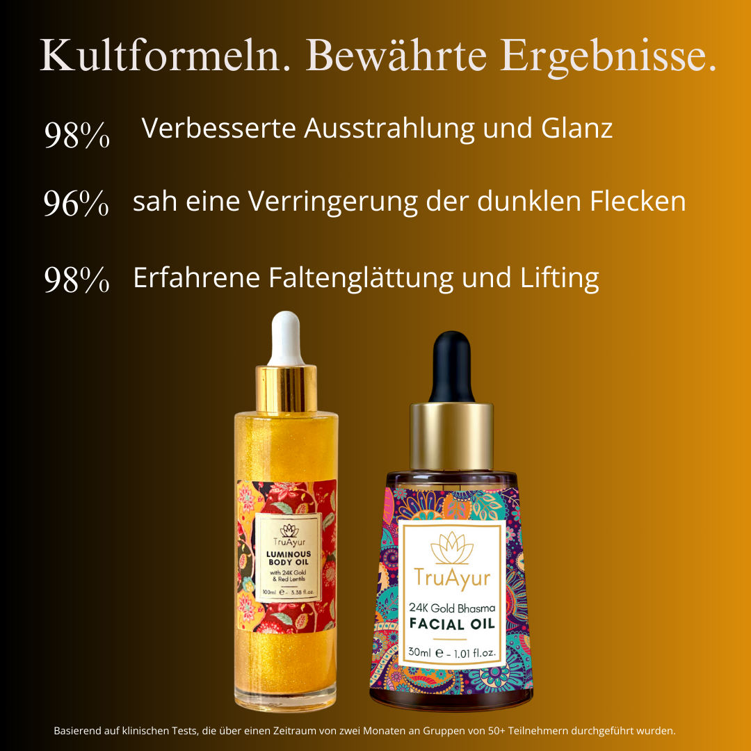 24K Gold Ayurvedisches Strahlkraft-Ritual (24K Gold Anti-Pigment-Gesichtsöl und Körperöl)