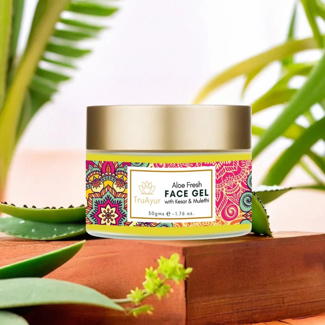 Aloe Fresh Gesichtsgel mit Kashmiri Kesar und Mulethi für einen strahlenden Glanz und tiefe Feuchtigkeitsversorgung