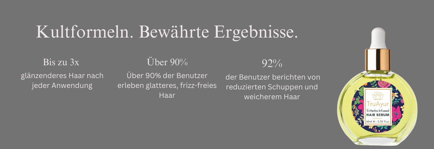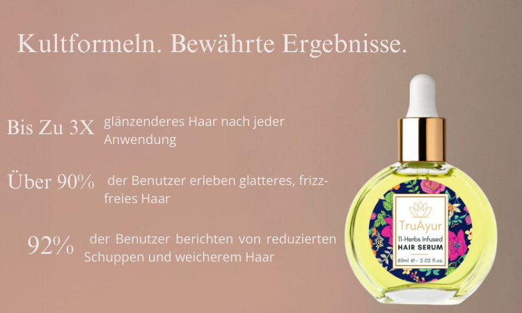 Unser ayurvedisches Haarserum ist ein luxuriöses Elixier, das stumpfem, strapaziertem Haar Leben einhaucht und ihm gleichzeitig seine natürliche Stärke und seinen Glanz zurückgibt. Dieses leichte Serum ist eine perfekte Mischung aus ayurvedischer Weisheit und fortschrittlicher Wissenschaft und behandelt häufige Haarprobleme wie Kräuseln, Trockenheit und Haarbruch. Es macht Ihr Haar glatt, strahlend und mühelos frisierbar.