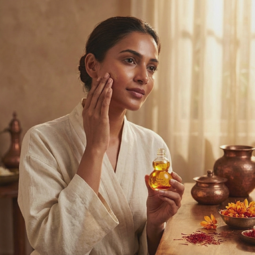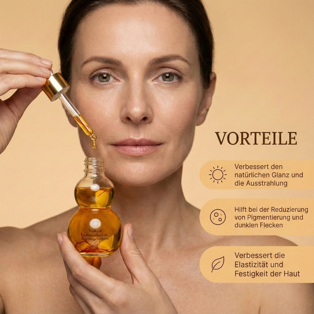 Ayurvedisches Ritual, moderne Ausstrahlung: Dieses Öl vereint traditionelle Safranrituale mit modernster Hautpflegeforschung und verwandelt Ihre Pflegeroutine in einen Moment purer Verwöhnung und strahlender Schönheit.